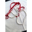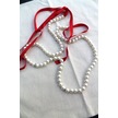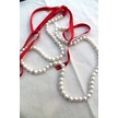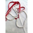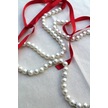 Kırmızı Kurdeleli Krem İncili Söz & Nişan Kurdelesi