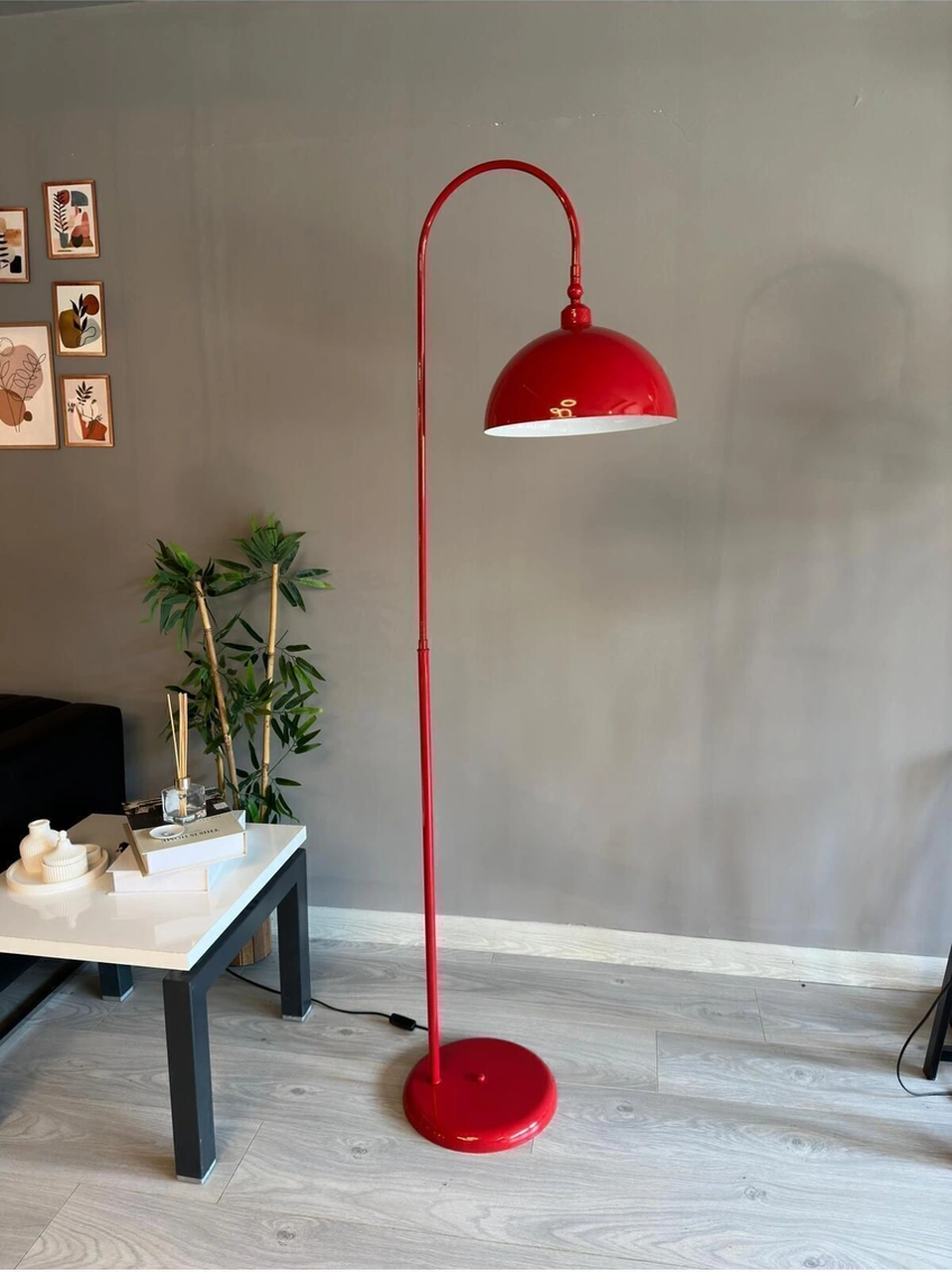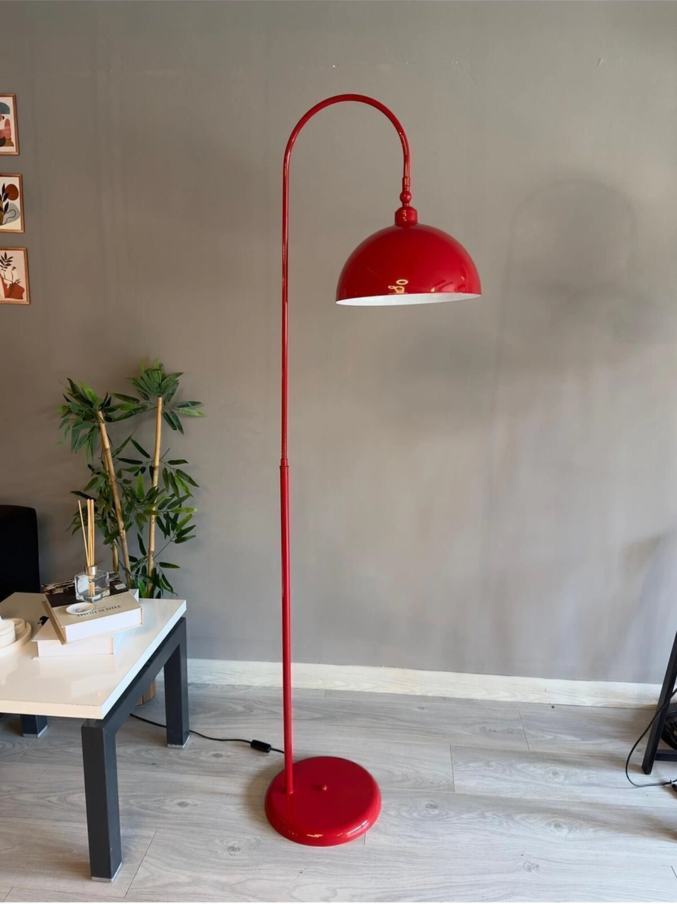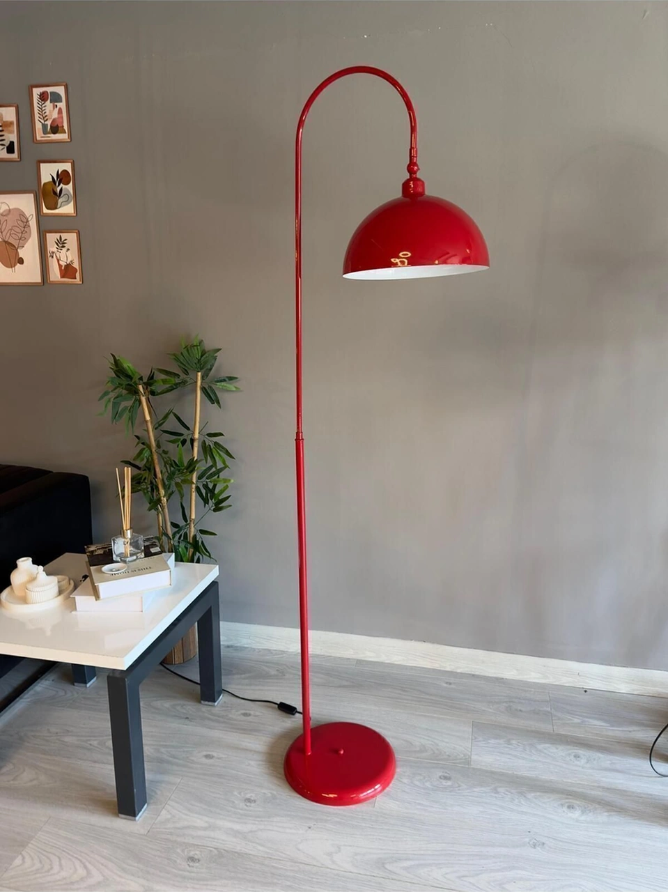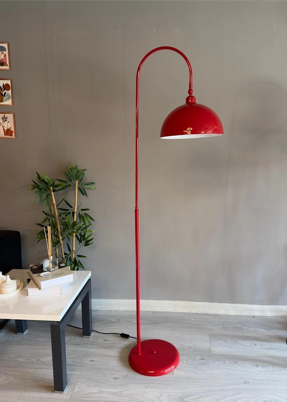 Kırmızı Lambader Hareketli Başlık Modern Dekoratif Metal Oturma Odası Çalışma Odası Zemin Lambası Kırmızı