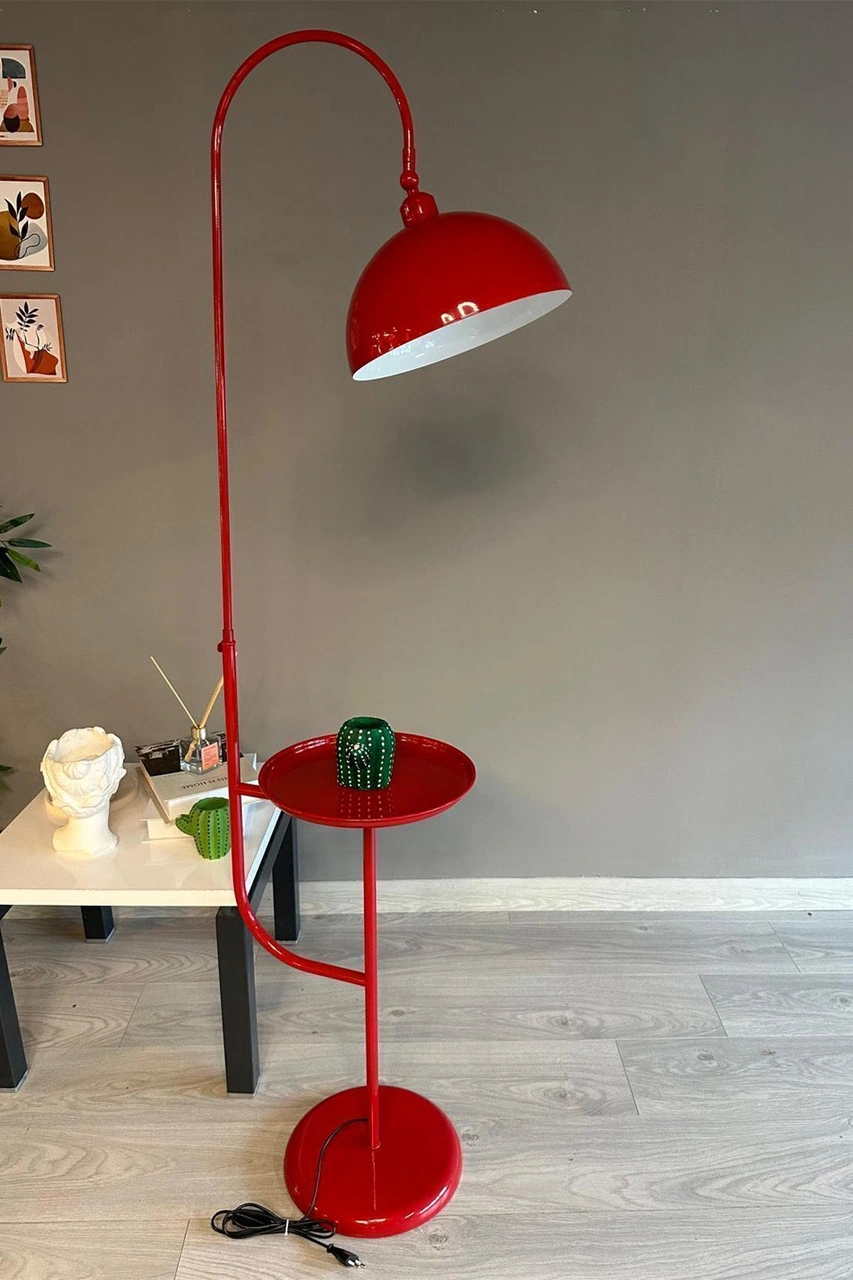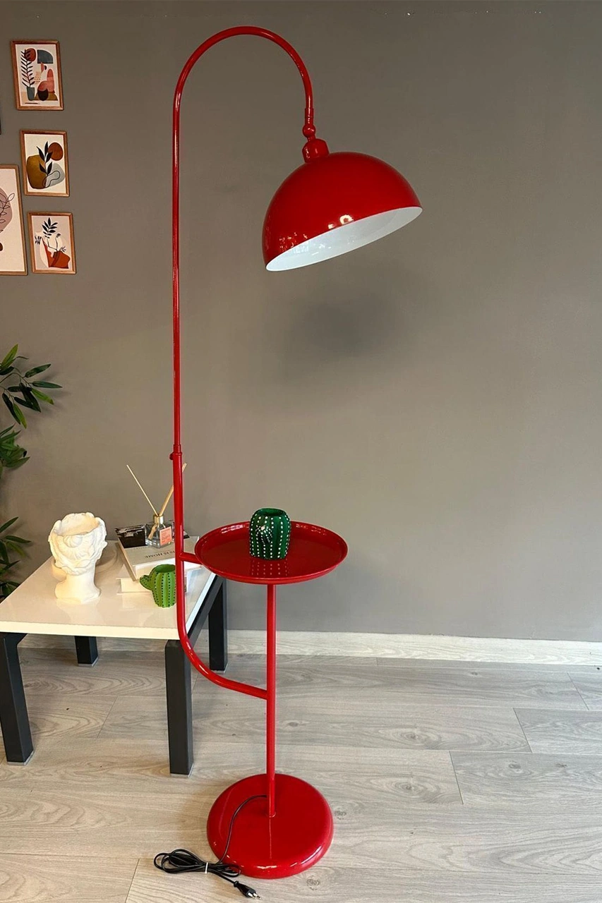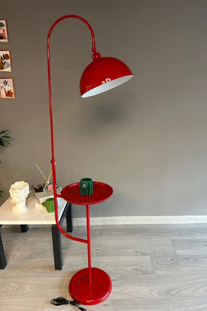 Kırmızı Lambader Hareketli Başlık Tepsili Modern Dekoratif Metal Oturma Odası Çalışma Odası Zemin Lambası Kırmızı