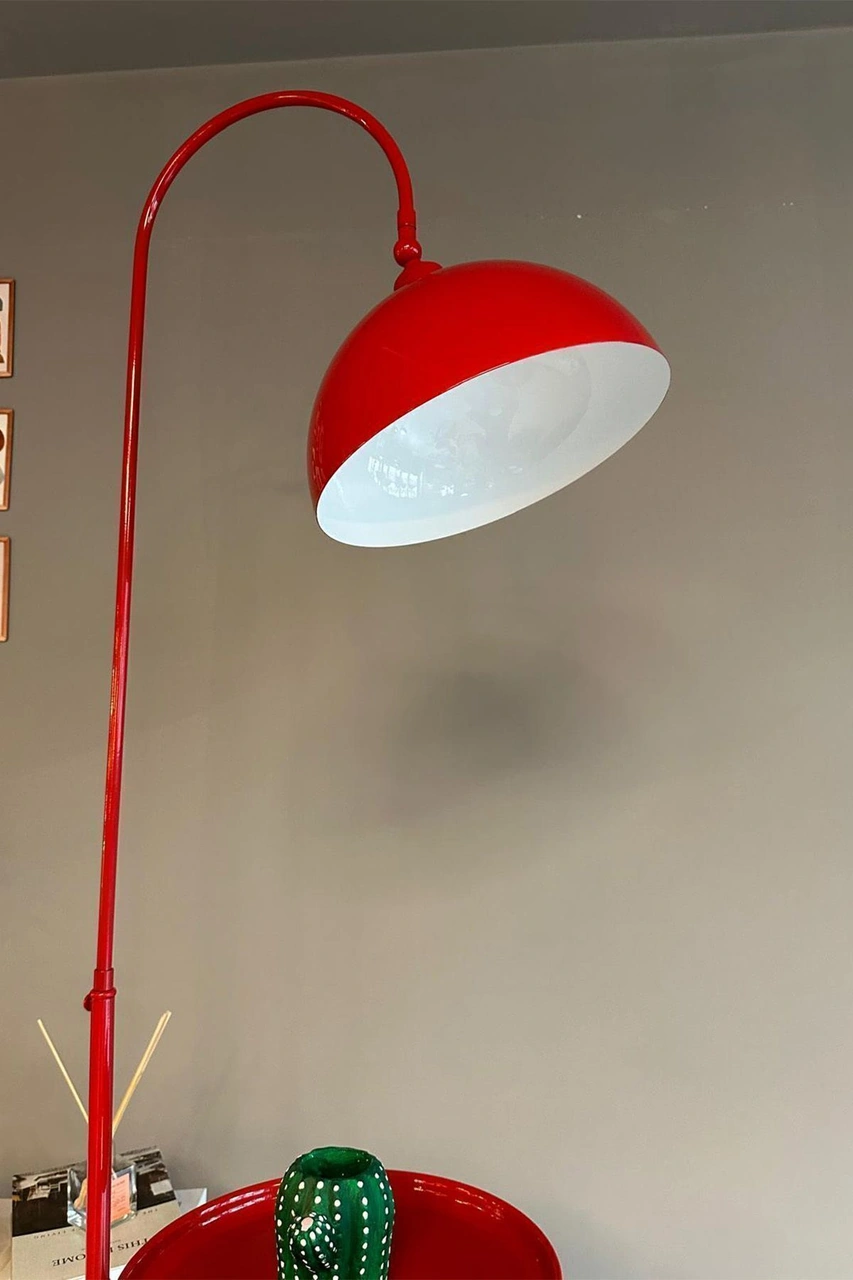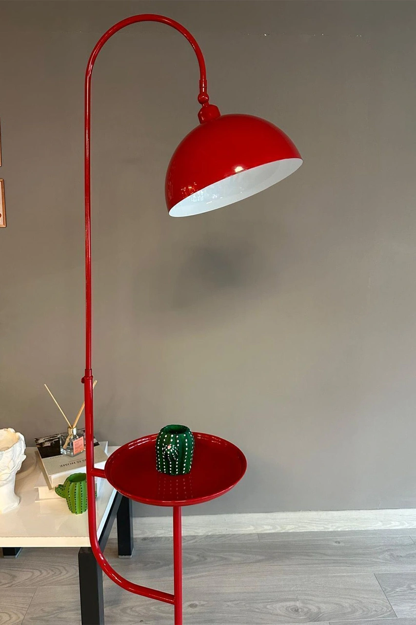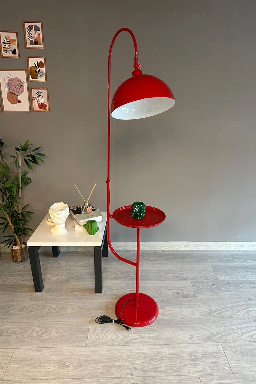 Kırmızı Lambader Hareketli Başlık Tepsili Modern Dekoratif Metal Oturma Odası Çalışma Odası Zemin Lambası Kırmızı