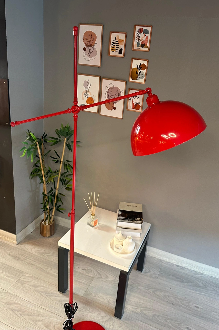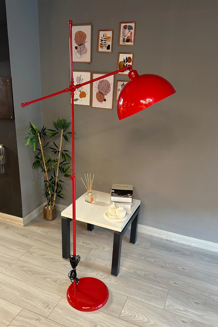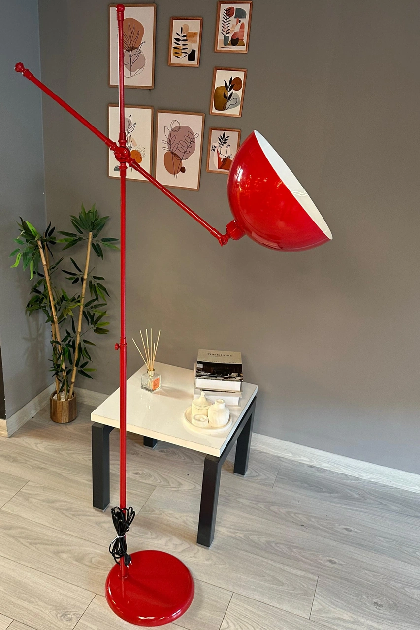 Kırmızı Makas Gövde Lambader Hareketli Başlık Modern Dekoratif Metal Oturma Odası Çalışma Odası Zemin Lambası Kırmızı