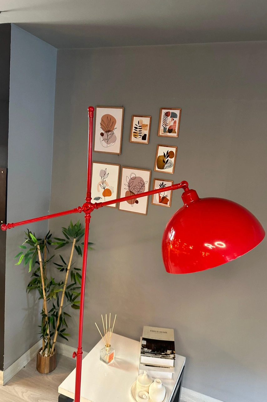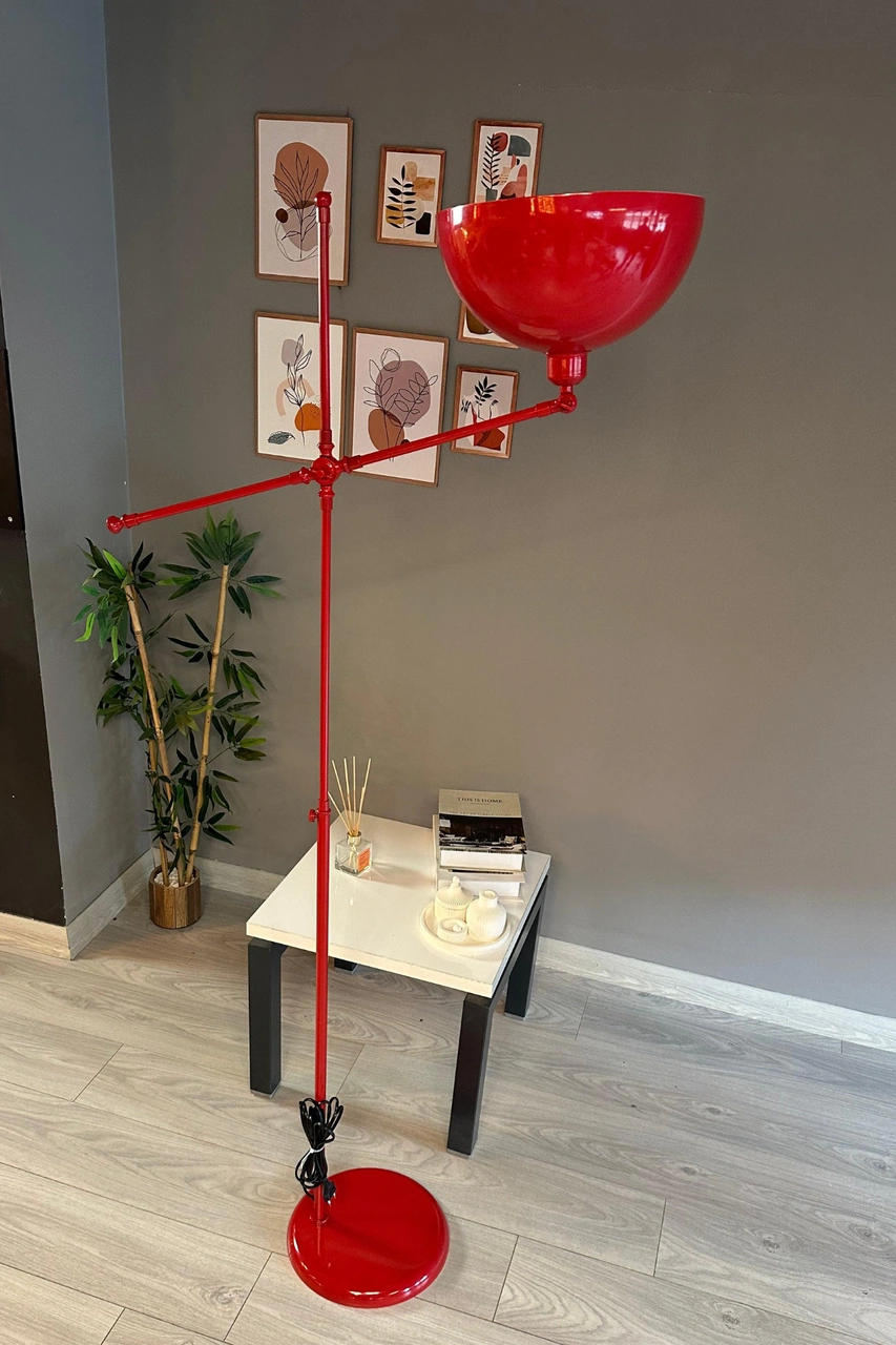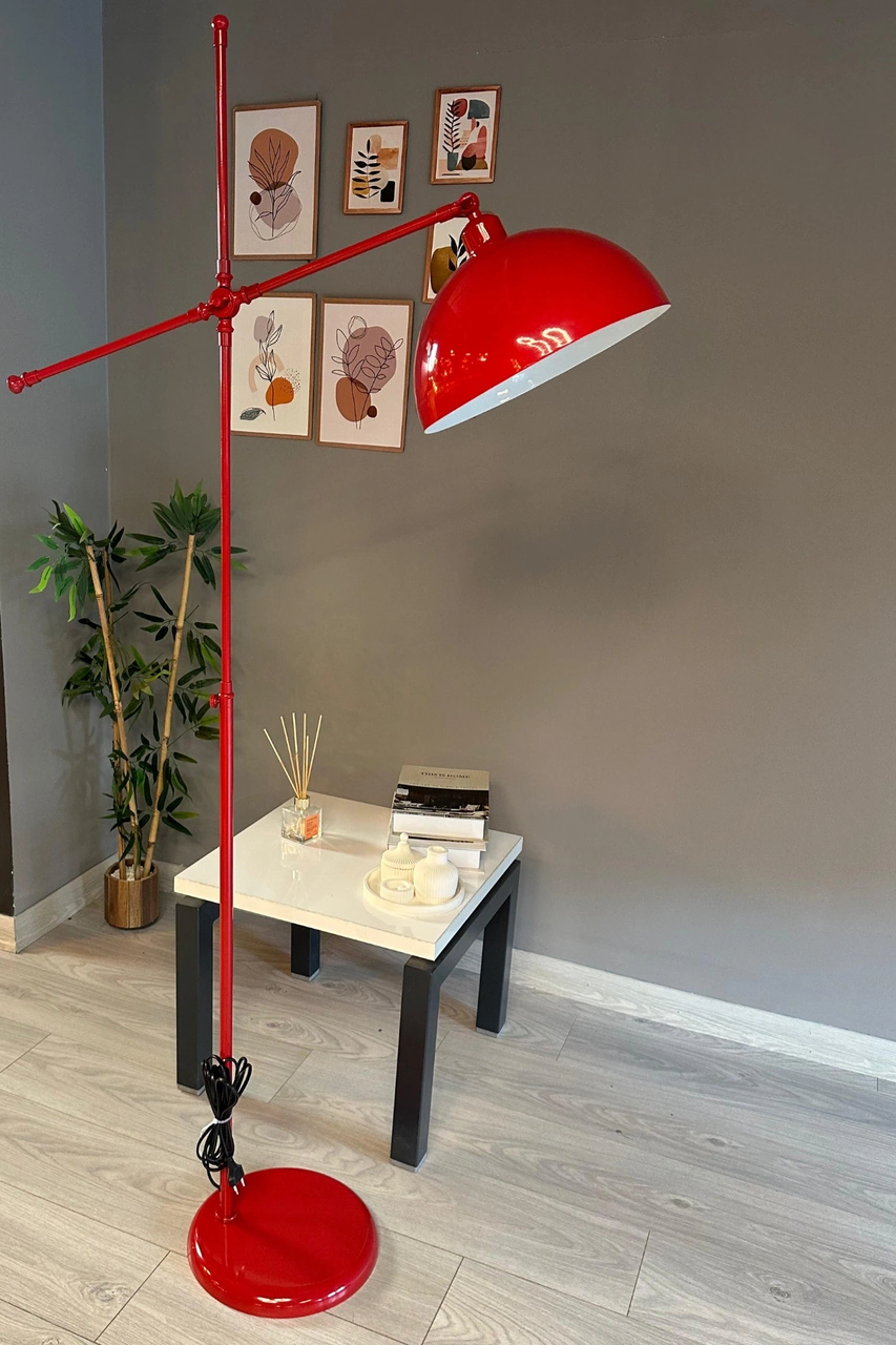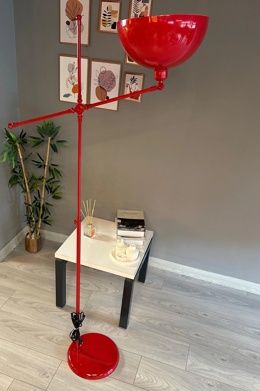Kırmızı Makas Gövde Lambader Hareketli Başlık Modern Dekoratif Metal Oturma Odası Çalışma Odası Zemin Lambası Kırmızı