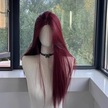 Kırmızı Peruk Uzun Düz Dantel Ön Peruk Kadın İçin Doğa Sentetik Diğer