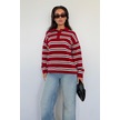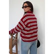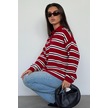 Kırmızı Polo Yaka Çizgili Kadın Triko Kazak Mg2469 Kırmızı