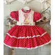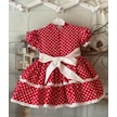 Kırmızı Puantiyeli Nakışlı Kız Bebek Elbisesi,özel Dikim Çocuk Elbisesi, Doğum Günü Elbisesi, 0-12 Yaş Kırmızı