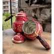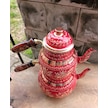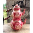 Kırmızı Seramik Boya Kaplama Gül Çiçek Bakır Çaydanlık Bakır