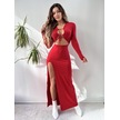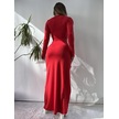 Kırmızı Uzun Kollu Göğüs Dekolteli Maksi Elbise