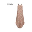 Kırmızı Vonda Yaz Kadın Boyundan Bağlamalı Kolsuz Çiçek Baskılı Askı Düzensiz Etek Maxi Elbise Kırmızı