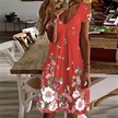 Kırmızı Yaz Moda V Yaka Elbise Bayanlar Kısa Kollu Kırmızı Çiçekler Baskılı Elbise Gevşek Gündelik Elbise Kadınlar İçin