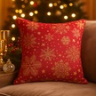 Kırmızı Yılbaşı Temalı Kırlent Kılıfı Kar Tanesi Desenli, Gold Detaylı 40 40 Cm 40 x 40