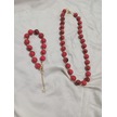 Kırmızı Yuvarlak Kolye Ve Bileklik Takımı Kırmızı