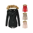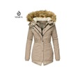 Kış Sıcak Kürk Yaka Kadın Fermuarlı Uzun Kollu Slim Fit Pamuklu Ceket Kapüşonlu Mont Kahverengi