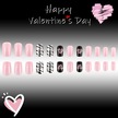 Kısa Günlük Bahar Manikürü Aşk Kontrast Renk Tırnak Siyah Pudra Çizgisi Tatlı Serin Parlak Takma Tırnak 24 Parça Dahil Araçlar Ys518