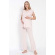 Kısa Kol Bisiklet Yaka Kadın Viskon Dantel Detaylı Hamile Pijama Takımı Sabahlık
