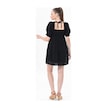 Kısa Kol Lara Kare Yaka Bağlama Detaylı Yazlık Müslin Elbise Siyah Syh-siyah Siyah