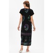 Kısa Kol Pamuk Hitit Uzun Elbise Yaprak Renkli Yprk Renkl-yaprak Renkli Siyah