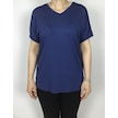 Kısa Kol V Yaka Likralı Düz Penye Bluz Mavi
