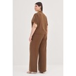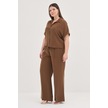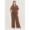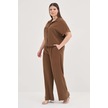 Kısa Kollu Oversize Gömlek-1801 Kahverengi