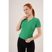 Kısa Kollu Yaka Detaylı Kaşkorse Yeşil Bluz Karışık