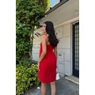 Kısa Pamuklu Yaz Elbisesi Askısı Bağlamalı Astarsız Kırmızı