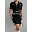 Kısa Triko Etekli Takım - Siyah-krem Siyah - Krem