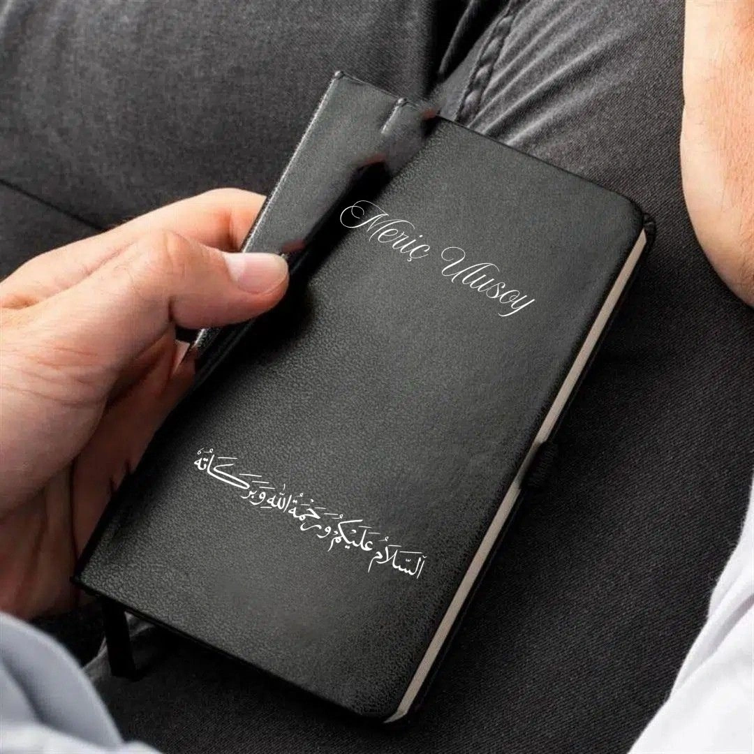 Kişiye Özel Hat Sanatı Tasarımlı Deri Not Defteri İsme Özel Manevi Hediye Siyah