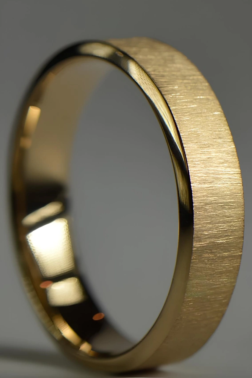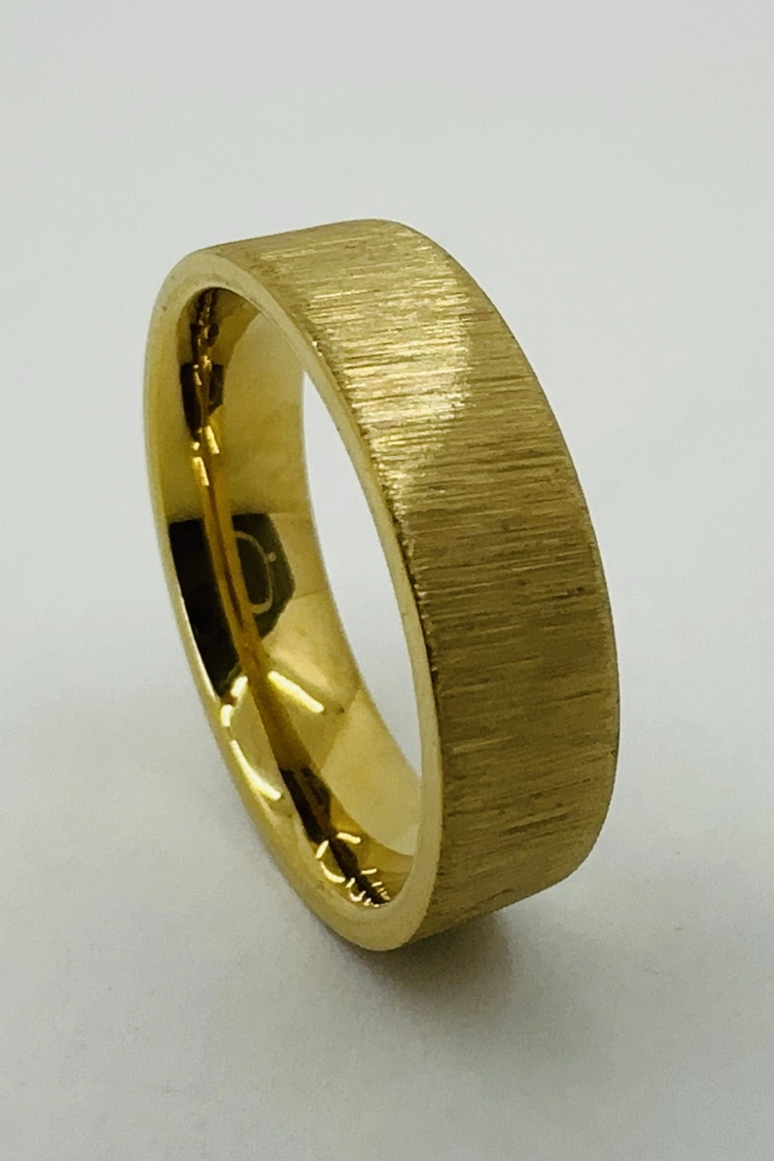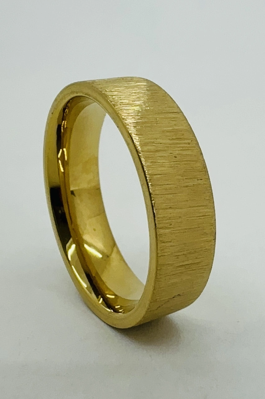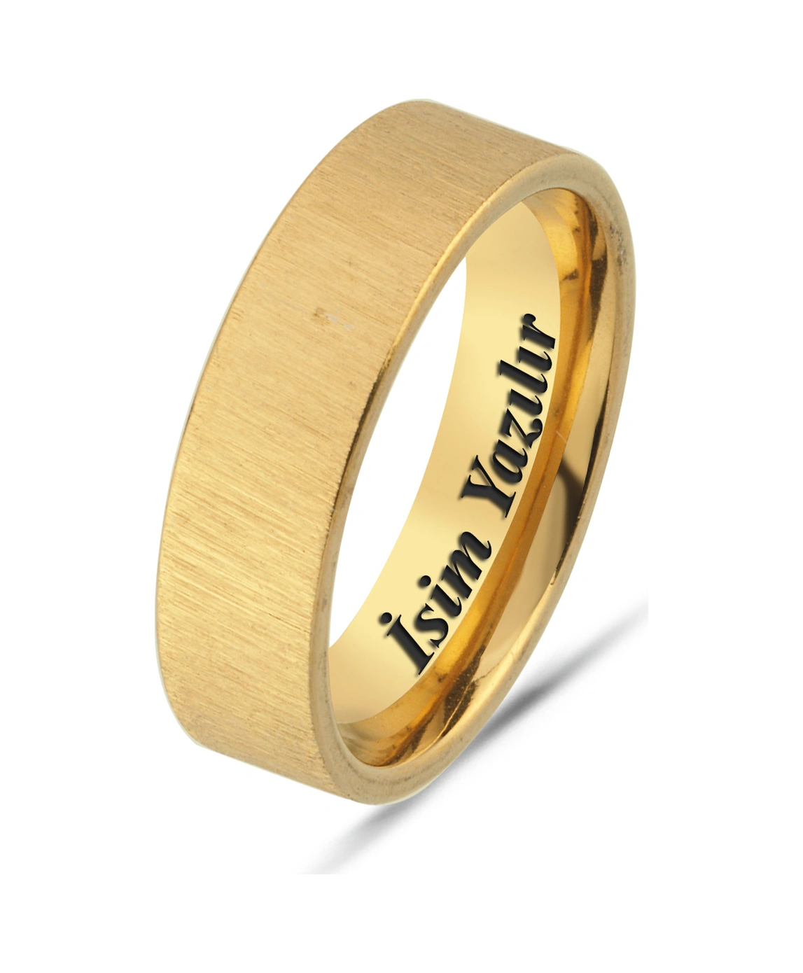 Kişiye Özel İsim Tarih Yazılı 6mm Mat Fırçalanmış Düz Unisex Çelik Yüzük Alyans Cl46y Sarı