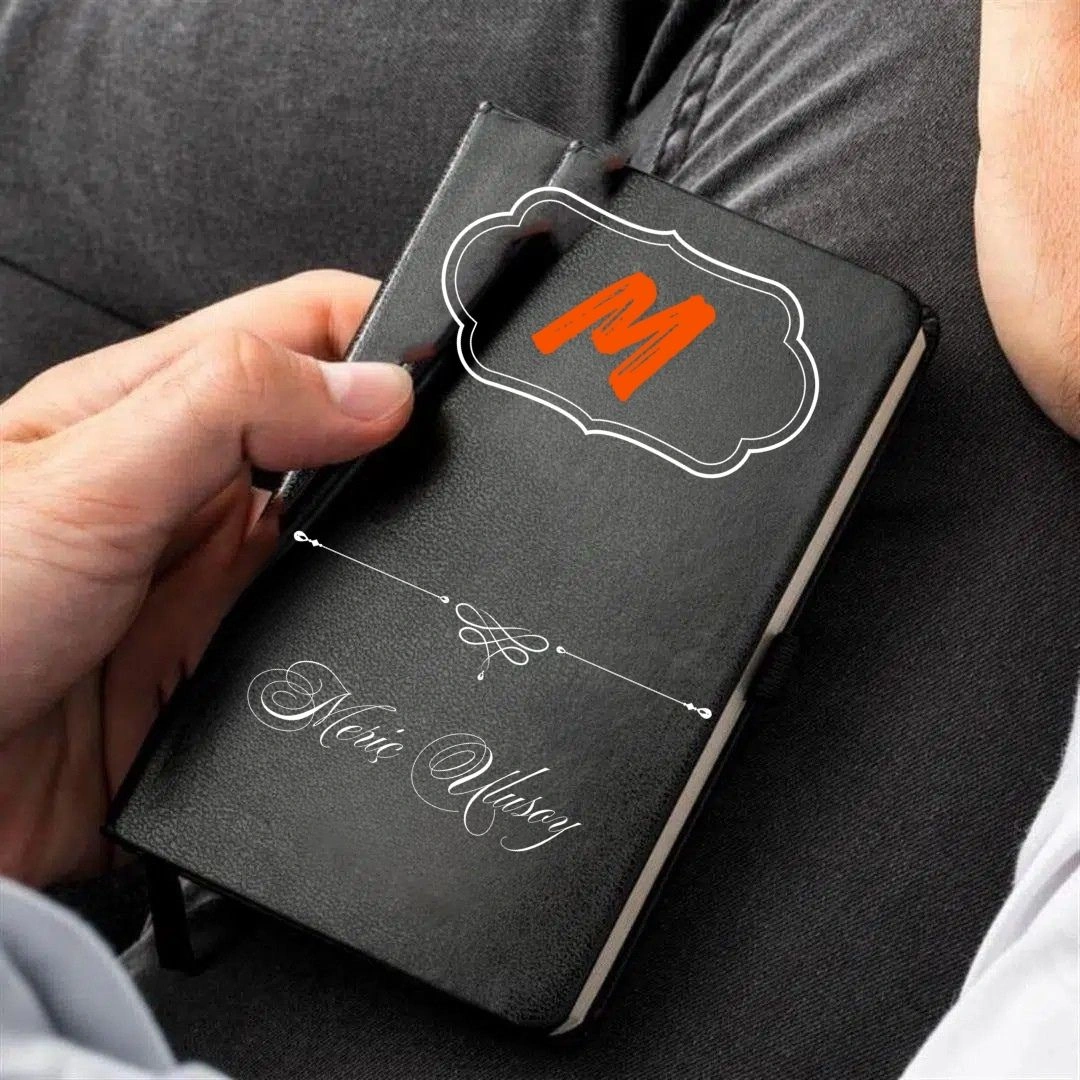 Kişiye Özel İsim Yazılı Deri Kapaklı Not Defteri Şık Ve Zarif Tasarım Siyah