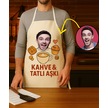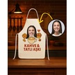 Kişiye Özel Karikatür Fotoğraflı Mutfak Önlüğü Kahve Tatlı Aşkı Krem