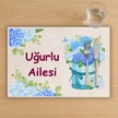 Kişiye Özel Mavi Çiçekler Yazılı Tasarımlı Amerikan Servis, Tabak Altlığı & Ev Hediyesi, 2 Adet Krem