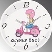 Kişiye Özel Motorbisikletli Kız Çap 30cm Sessiz Akar Bombeli Gerçek Cam Duvar Saati Siyah