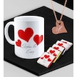 Kişiye Özel Sevgililer Temalı Kupa Madlen Çikolata Ve Rose Kalp Kolye Set - 90