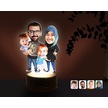 Kişiye Özel Tesettürlü Aile Karikatürlü Dekoratif 3D Biblo Led Iş (483006929)