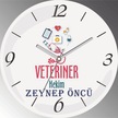 Kişiye Özel Veteriner Hekim Çap 30cm Sessiz Akar Bombeli Gerçek Cam Duvar Saati Siyah