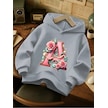 Kışlık Kapüşonlu Sweatshirt, Çocuk A Harfli Baskılı Gri