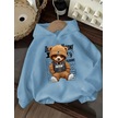 Kışlık Kapüşonlu Sweatshirt, Çocuk Ayıcık Baskılı Bebe Mavisi