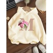 Kışlık Kapüşonlu Sweatshirt, Çocuk Çiçekler M Harfli Baskılı Bej