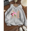 Kışlık Kapüşonlu Sweatshirt, Çocuk Çiçekler M Harfli Baskılı Gri