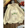 Kışlık Kapüşonlu Sweatshirt, Çocuk Grow Positive Papatya Baskılı Bej