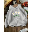 Kışlık Kapüşonlu Sweatshirt, Çocuk Grow Positive Papatya Baskılı Gri