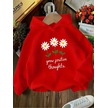 Kışlık Kapüşonlu Sweatshirt, Çocuk Grow Positive Papatya Baskılı Kırmızı