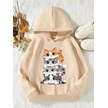 Kışlık Kapüşonlu Sweatshirt, Çocuk Kediciklerbaskılı Bej