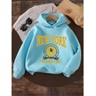 Kışlık Kapüşonlu Sweatshirt, Çocuk New York Manhattan Baskılı Bebe Mavisi