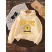 Kışlık Kapüşonlu Sweatshirt, Çocuk New York Manhattan Baskılı Bej