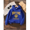 Kışlık Kapüşonlu Sweatshirt, Çocuk New York Manhattan Baskılı Mavi