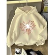 Kışlık Kapüşonlu Sweatshirt, Çocuk Örümcek Ağ Kalpli Baskılı Bej