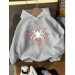 Kışlık Kapüşonlu Sweatshirt, Çocuk Örümcek Ağ Kalpli Baskılı Gri