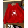 Kışlık Kapüşonlu Sweatshirt, Çocuk Örümcek Ağ Kalpli Baskılı Kırmızı