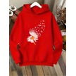 Kışlık Kapüşonlu Sweatshirt, Çocuk Papatya Kelebek Baskılı Kırmızı