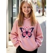 Kışlık Kapüşonlu Sweatshirt, Çocuk Pembe Kelebek Baskılı Pembe